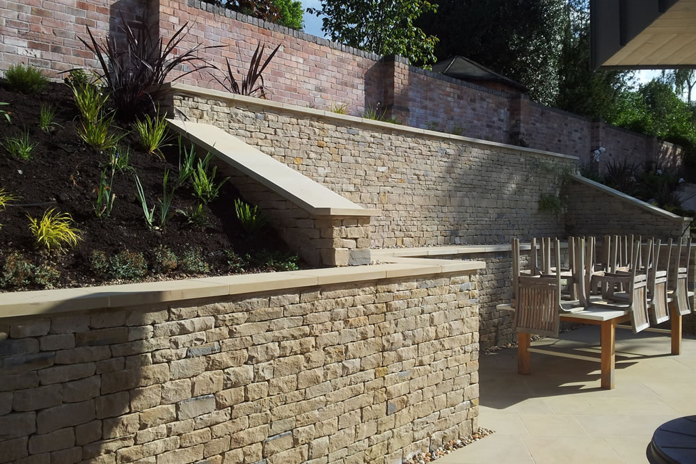 MODERN COTSWOLD STONE RETAINING WALL CHELTENHAM GLOUCESTERSHIRE
